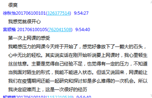 7、学生吕为鹏:网络学习的关键还在与相互的参与。我们都知道现代教育的发展越来越强调自主学习和讨论式的学习,网络就给我门这样一个机会,参加了网课最深刻的印象就是简易方便,学习的过程可以随心所欲。