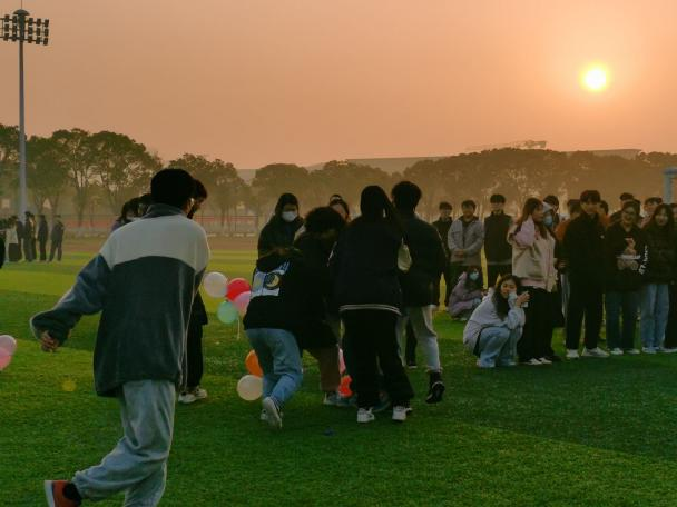 随着太阳的升起,“青马”班的学员们以班级为单位,两两分开,对决开展“踩气球“活动,成员们踩爆对方气球的同时也要保护自己的气球,这需要考验大家的团队意识。在活动中,同学们使出浑身解数,你一“招”我一“式”,开始了踩气球拉锯战。在这场激烈而又充满欢声笑语的比赛中,大家的距离在渐渐拉近,交流也多了几分。