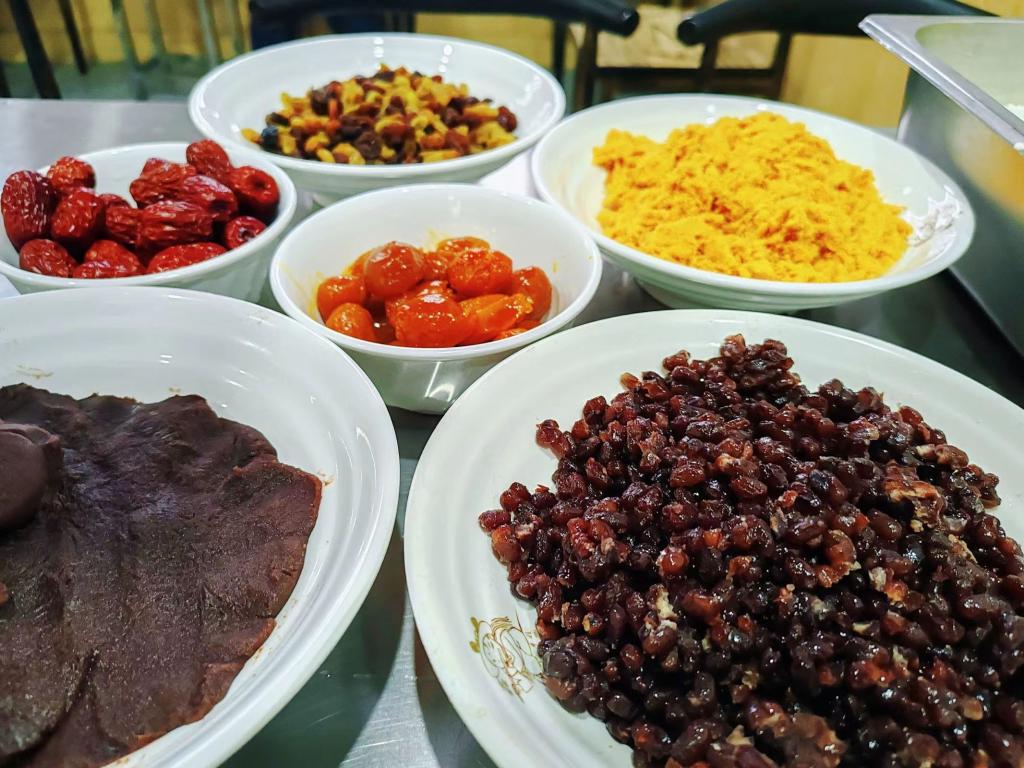 志愿者们准备了糯米饭和各式各样的配料,包括红枣、红豆、葡萄干、豆沙、咸蛋黄、肉松,以满足大家不同口味的需求。活动中,志愿者们按照不同的口味添加各种配料,精心制作糯米饭,在一片欢声笑语分享着快乐暖意。