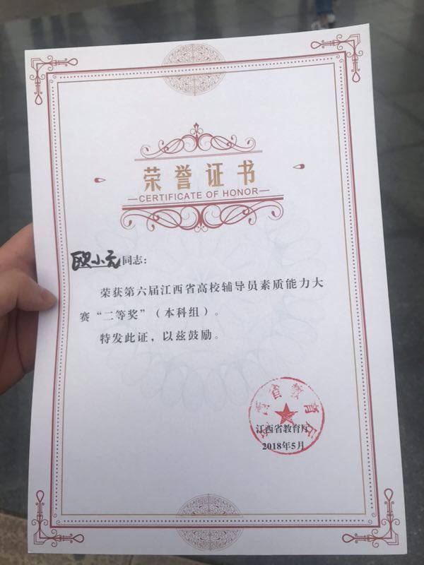 潜心耕耘,自有花开。近年来,我校高度重视辅导员队伍建设工作,不断拓宽工作思路,创新工作方法,通过举办校级辅导员职业能力大赛及各类模拟比赛为辅导员们提供锻炼的平台,以赛促建。据悉,为最好本次大赛的备战工作,校党委委员、党委工作部(处)部(处)长、学工处处长张建荣亲自部署,各学院全力配合、积极参与,经校内选拔,欧小元等三位同志代表我校参加第六届江西省高校辅导员素质能力大赛,取得了优异成绩,为学校争得了荣誉,展现了我校辅导员队伍的综合能力和时代风采。