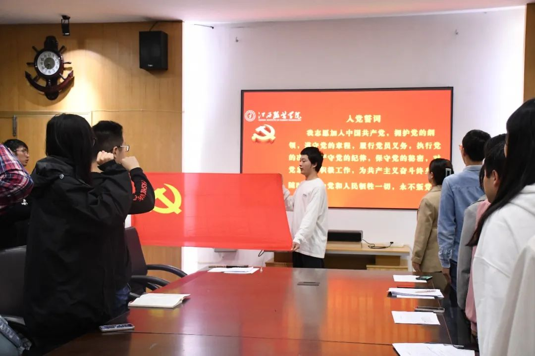 接着,学生第一党支部组织委员孙肖肖带领全体党员重温入党誓词:“我志愿加入中国共产党,拥护党的纲领,遵守党的章程……”重温入党誓词,重忆入党初心,强化党性教育,进一步激发支部党员学习干事创业的信心和热情,激励新党员坚定理想信念,牢固树立宗旨意识。
