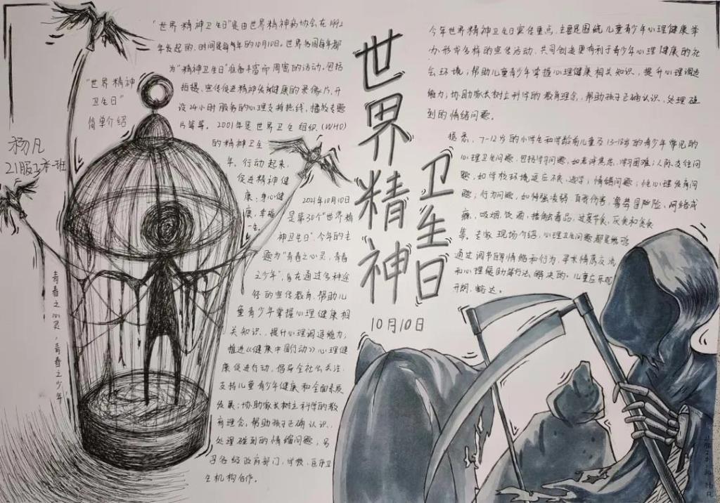 本次系列活动通过海报宣传、绘制板报、主题讲座等形式向同学们普及精神卫生知识,面对2021级新生还重点介绍了适应主题的相关知识以及学校心理健康教育资源,为有需要的同学提供一对一的心理帮助和辅导,引导同学正确看待心理疾病,提高同学们对心理学知识的学习和运用,增强心理健康意识,引导健康心理的建立。并鼓励同学们关爱他人心理健康,积极传播社会正能量。