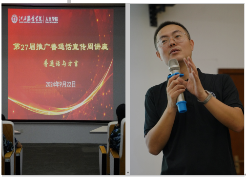 新闻中心讯(校语委办 吴晓璞撰稿)2024年9月22日,在全国推广普通话宣传周的最后一天,人文学院语言文化教研室主任吴晓璞为新生做了主题为“普通话与方言”的精彩讲座。