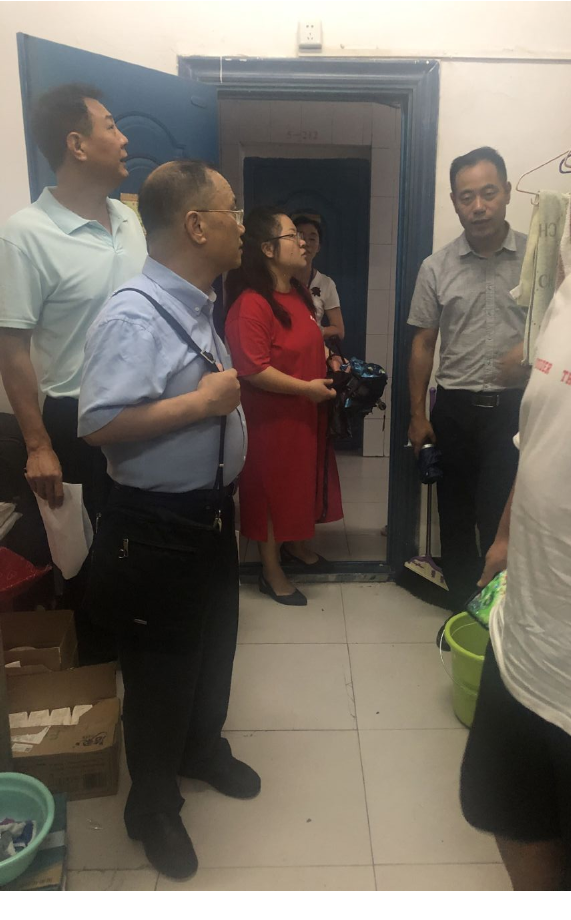 新闻中心讯:为严格落实上级和学校有关疫情防控措施,科学有序恢复同学们正常的学习生活,9月10日,人文学院分管校领导王德保总督学、院长马国照、党总支书记彭波、副院长付凌云、学工办副主任王艳艳和辅导员周雅舒老师以及部分学生干部一同走访了学院清源区和清澜区的部分学生宿舍。