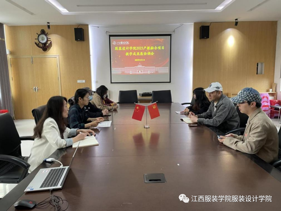 2023年5月11日上午,服装设计学院在清源一栋四楼会议室召开产教融合项目教学成果展协调会议。会议由教研室副主任贾金喜主持,服装设计学院副院长陈晓玲、时尚传媒学院副院长李有为和产教融合各项目班负责人共10人出席了会议,对即将开展的产教融合教学成果展工作进行了总体安排布置。