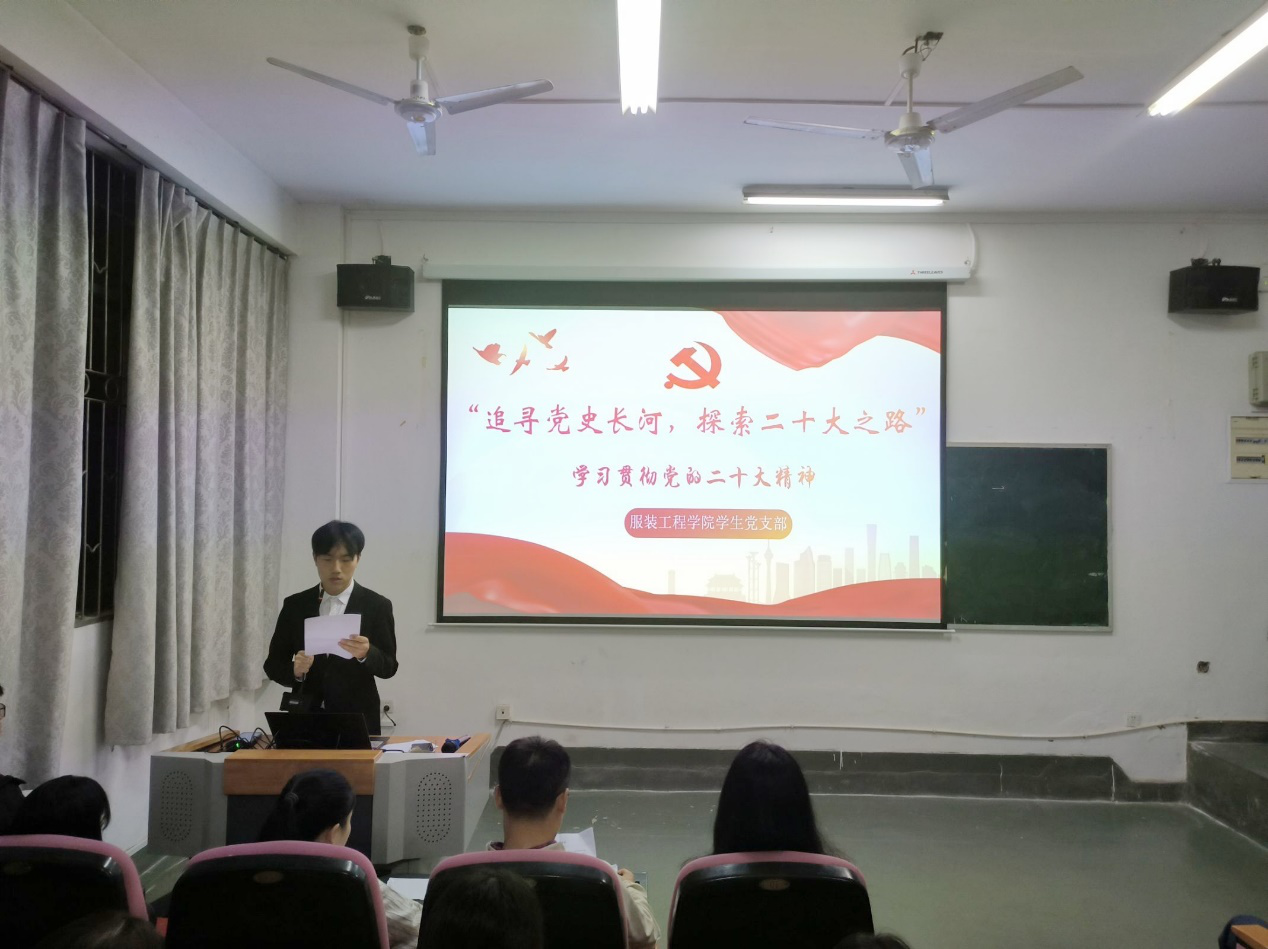 (服装工程学院讯 许金丽撰稿)为深入学习宣传贯彻党的二十大精神,10月9日晚7:00,服装工程学院在主教楼-112多媒体教室开展了“追寻党史长河,探索二十大之路”党史知识竞赛,学院辅导员石福俊以及各班级学生代表参加了此次活动,活动由孙浩钧主持。