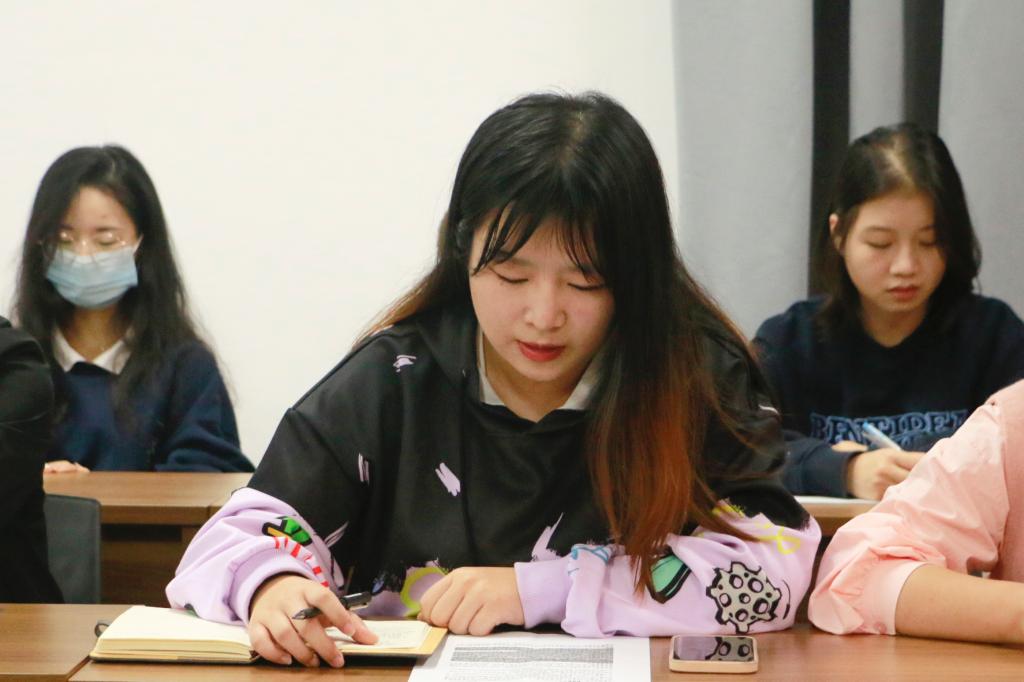 商学院辅导员卢佳琪从“完善队伍建设制度”“加强推文的点赞评论与转发”“严格落实三审三校工作制度”三个方面交流分享网评员队伍建设工作经验。