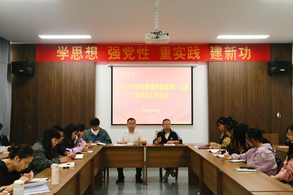 (新闻中心讯 樊翔撰稿)为认真贯彻落实习近平总书记对宣传思想文化工作的重要指示精神,提升学校新闻宣传工作者业务能力,提高学校网络舆情应急处理水平,校党委宣传部日前召开了2023-2024学年江服新媒体联盟第一次工作会议暨网评员培训会,党委委员、宣传部部长沈新建,各新媒体联盟理事单位负责老师、学生干部,各学院、各部门网评员等思政骨干参加会议。会议由党委宣传部副部长朱雨春主持。