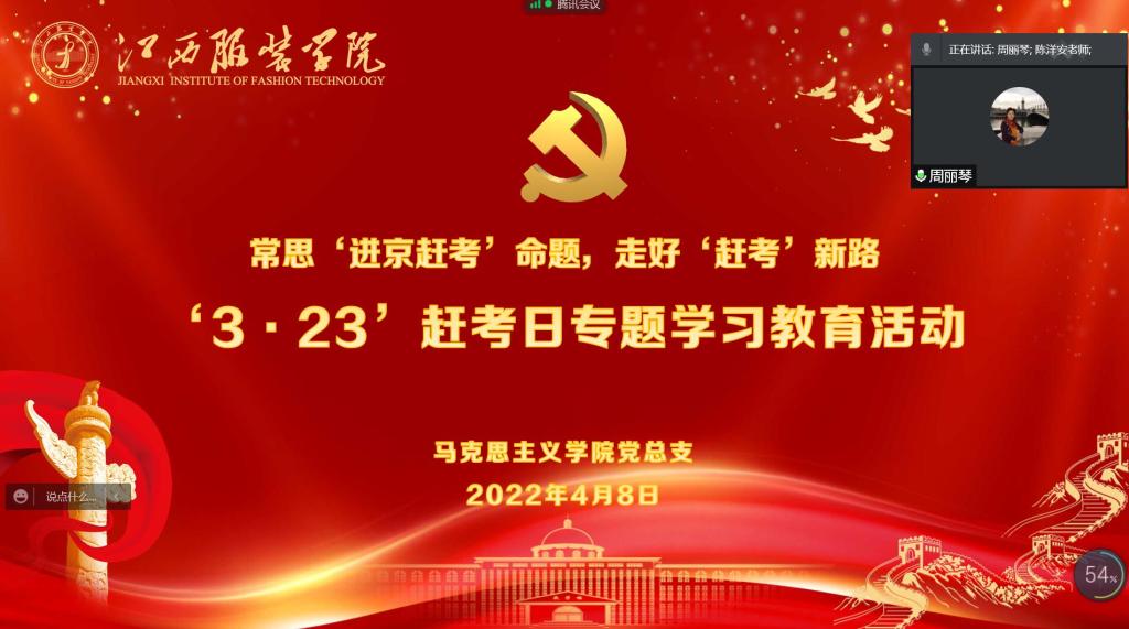 2022年3月23日,是党中央离开西柏坡“进京赶考”73周年纪念日。为深入了解党的历史,走好新时代“赶考路”,牢记“两个务必”,提升思想政治素养。4月8日,马克思主义学院开展了“3·23”赶考日专题学习教育活动。学院党总支成员、各支部教师党员参加,活动由马克思主义学院学院党总支副书记陈洋安主持。