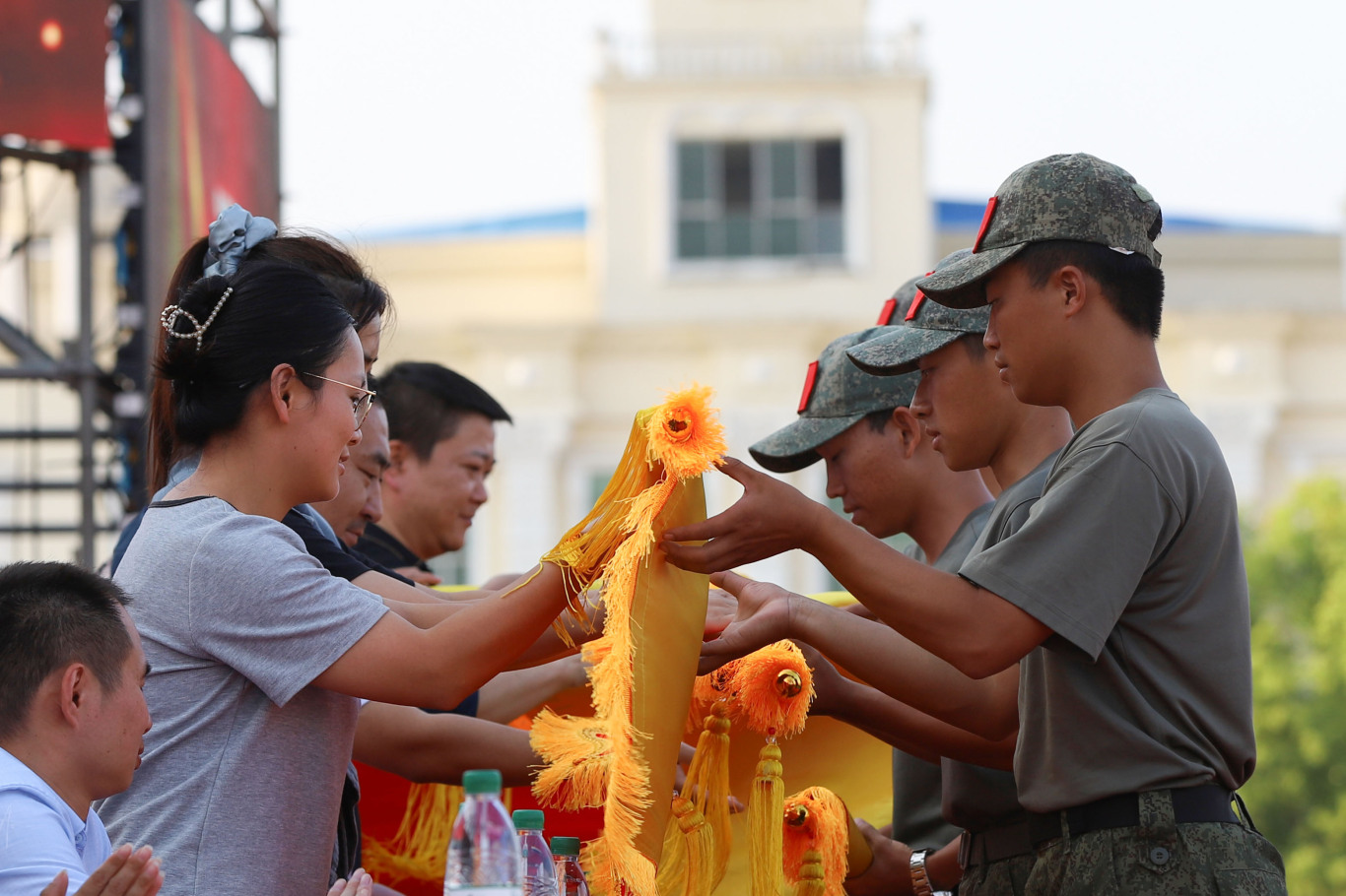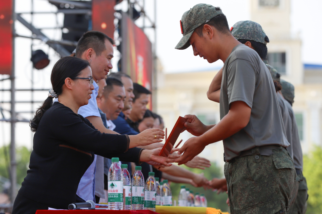 与会领导向受表彰的连队、教官、参训辅导员员和学生颁发锦旗和证书
