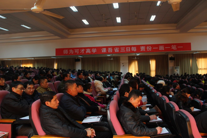 1月19日,研修班开班仪式在南六报告厅举行,会场两侧“一笔一画一份责,每日三省吾课,学高才可为师”、“亦师亦友亦如子,凡事求真至善,身正方能成范”的条幅,提醒每一位教师,作为人类文明的传播者和建设者,作为人类灵魂的工程师,一定要遵守教师职业道德,牢记自己所肩负的教书育人重担。会上,校领导表示,2015年学校抓住一个主题,就是转型发展;突出一个中心,就是教风学风建设;立足一个重点,就是加强师资队伍建设;强化一个功能,就是科研为地方经济社会服务;实现一个目标,就是人才培养质量提高。所以,学校希望通过举办此次培训,提升教师的教学科研和服务社会的水平,提升学工人员科学管理的能力,提升行政人员的服务管理水平,建设一支有理想信念、道德情操、扎实学识和仁爱之心的教师队伍,每位教师要站在一个新的高度,把自身利益与学校利益结合起来。