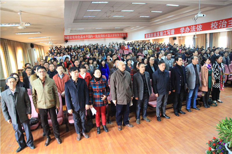 陈万龙校长分析了国家经济的新常态、教育发展的新常态,深入剖析了学校发展的新常态:从发展的环境看,机遇与挑战并存;从发展的定位来看,要坚持应用技术型定位;从发展方式看,要把专业办特,把特色办精;从发展动力看,要主动作为,创新驱动;从治校理念看,要依法治校,立德树人。