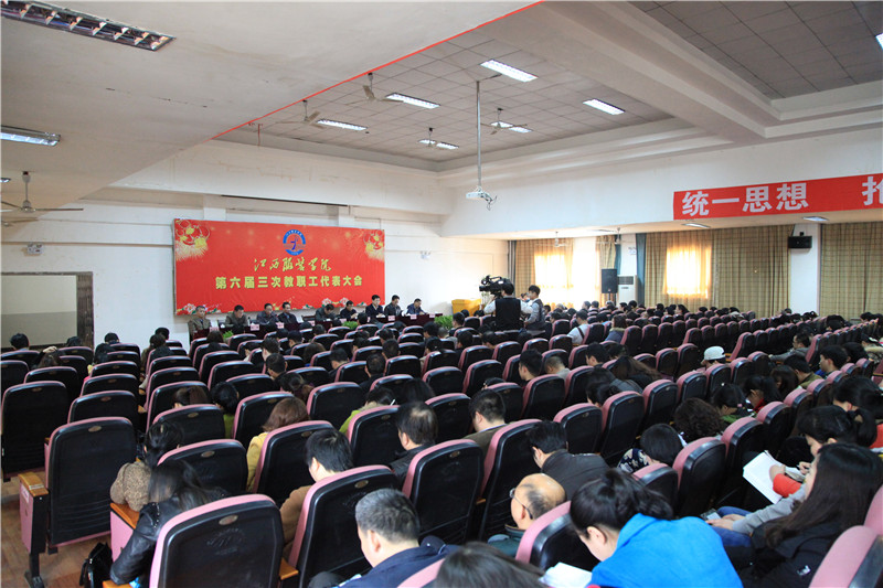 六届三次教代会在雄壮的国歌声中隆重开幕。省政府督导专员、校党委书记李小南为大会致开幕词。他说,过去的一年,全校上下,团结奋进、积极探索、锐意改革、创新发展,学校的教学、科研和社会服务等各项事业都取得了可喜的成绩。我校转型发展试点申请已获省政府批准。教学科研获得新成果。招生稳步增长。毕业生实现“新三高”就业。校府合作、校企合作展现新局面,特别是通过与石狮市政府的合作,已将石狮打造成为我校涵盖纺织面料、服装服饰完整产业链的,集设计、技术、管理、营销和社会实践为一体的应用技术型人才培养基地。基础设施建设、和谐平安校园建设、思想政治教育、服务管理模式改革都不断得到提升,校园呈现勃勃生机。所有这些,都是全校师生员工共同奋斗的结果,凝聚着全体江服人的智慧和力量!