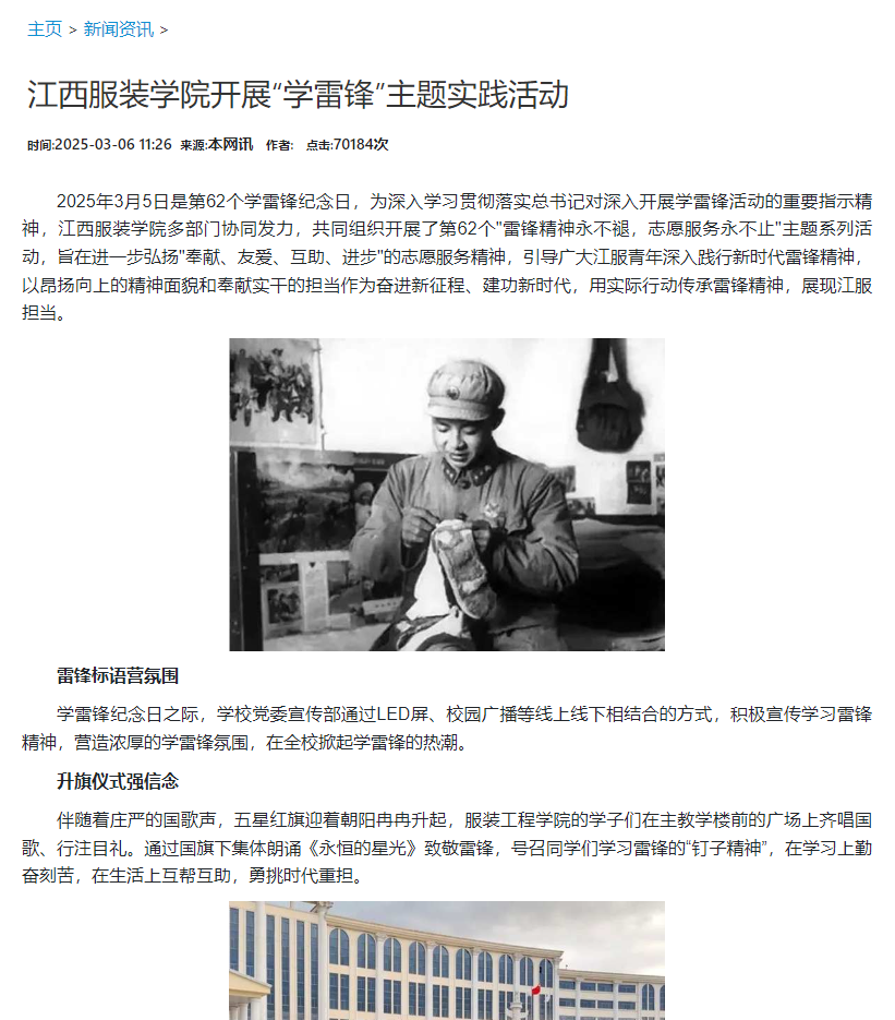 2025年3月5日是第62个学雷锋纪念日,万象城平台多部门协同发力,共同组织开展了第62个“雷锋精神永不褪,志愿服务永不止”主题系列活动,旨在进一步弘扬“奉献、友爱、互助、进步”的志愿服务精神,引导广大江服青年深入践行新时代雷锋精神,以昂扬向上的精神面貌和奉献实干的担当作为奋进新征程、建功新时代,用实际行动传承雷锋精神,展现江服担当。