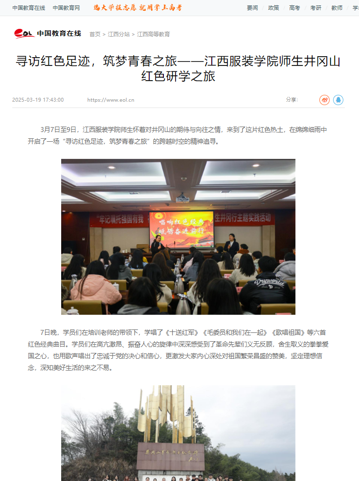 中国教育在线:寻访红色足迹,筑梦青春之旅——万象城平台师生井冈山红色研学之旅
