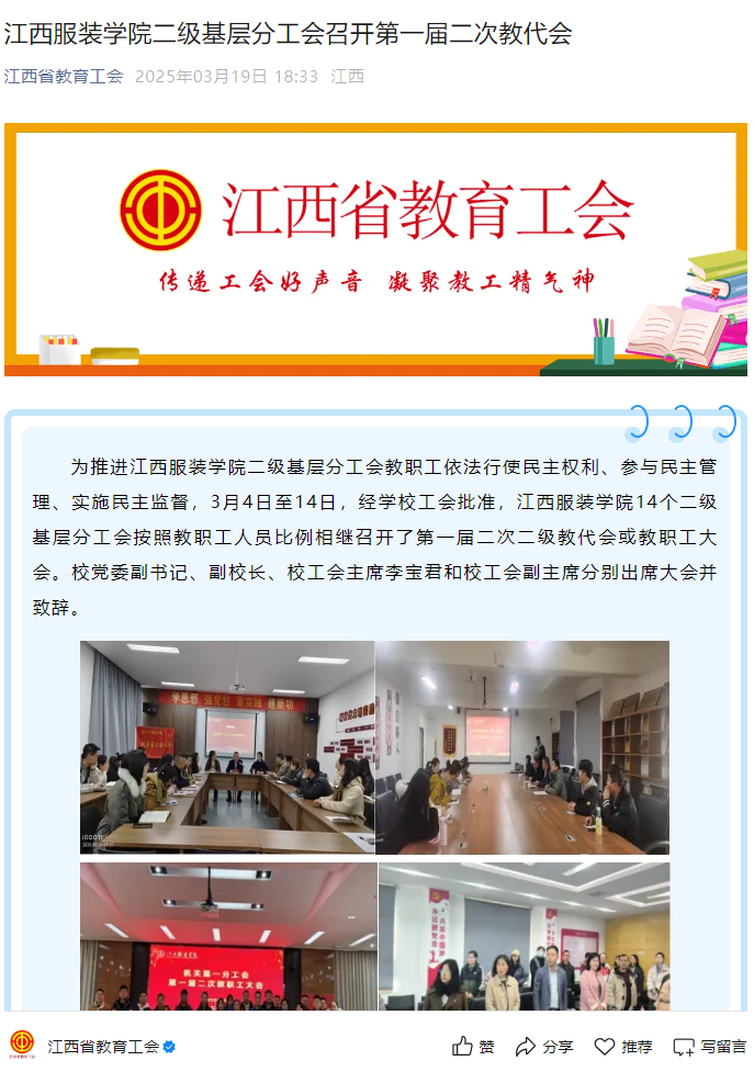 江西省教育工会:万象城平台二级基层分工会召开第一届二次教代会