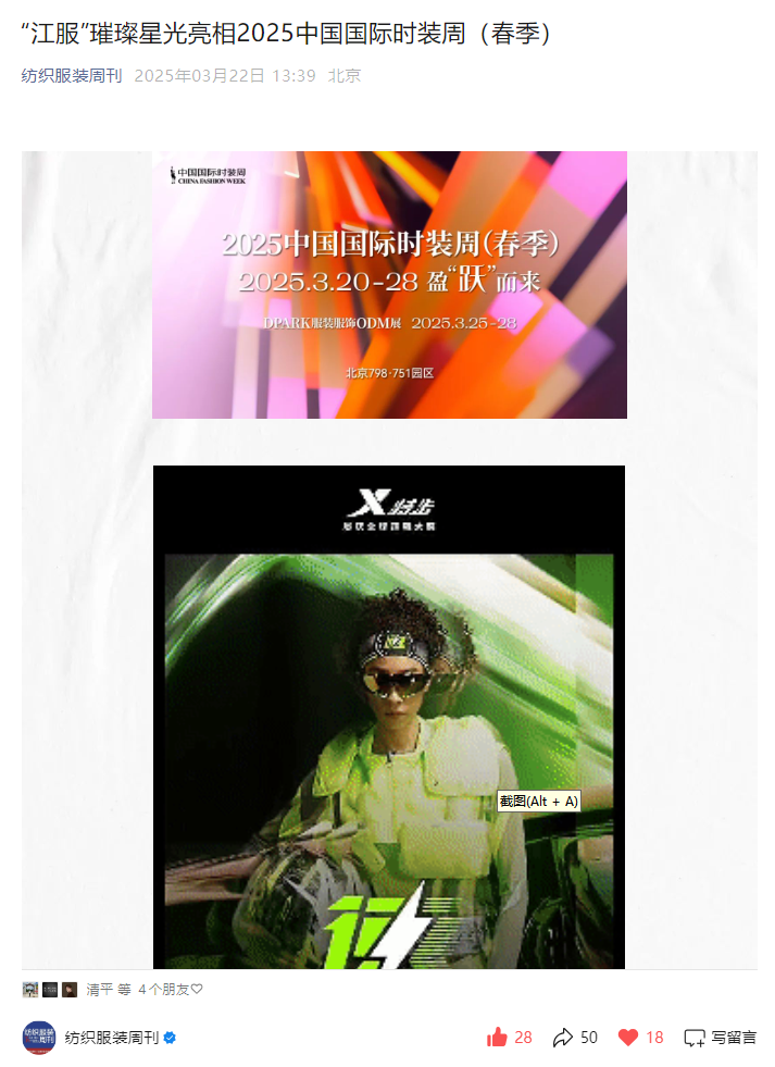 纺织服装周刊:“江服”璀璨星光亮相2025中国国际时装周(春季)