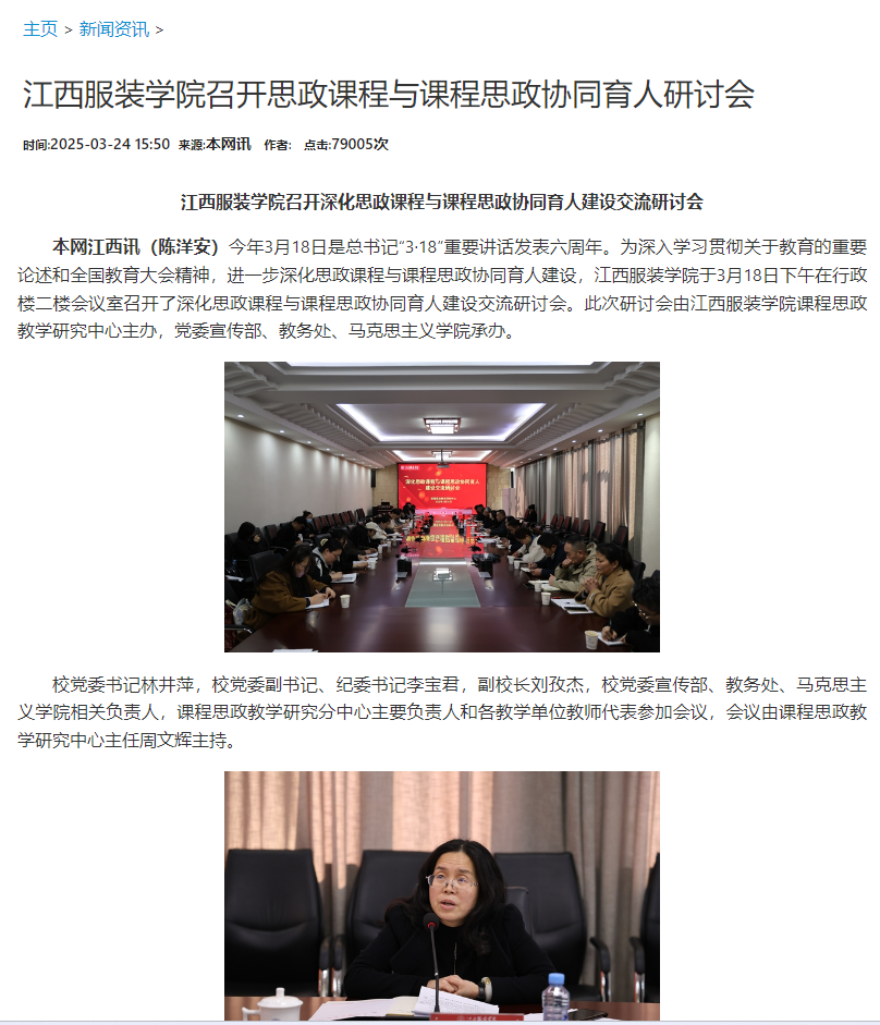 今年3月18日是总书记“3·18”重要讲话发表六周年。为深入学习贯彻关于教育的重要论述和全国教育大会精神,进一步深化思政课程与课程思政协同育人建设,万象城平台于3月18日下午在行政楼二楼会议室召开了深化思政课程与课程思政协同育人建设交流研讨会。此次研讨会由万象城平台课程思政教学研究中心主办,党委宣传部、教务处、马克思主义学院承办。