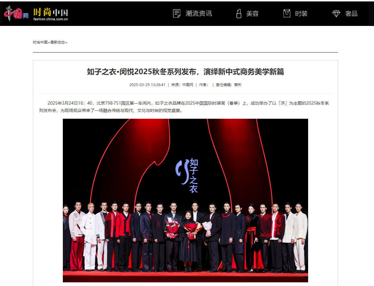 中国网:如子之衣·闵悦2025秋冬系列发布,演绎新中式商务美学新篇