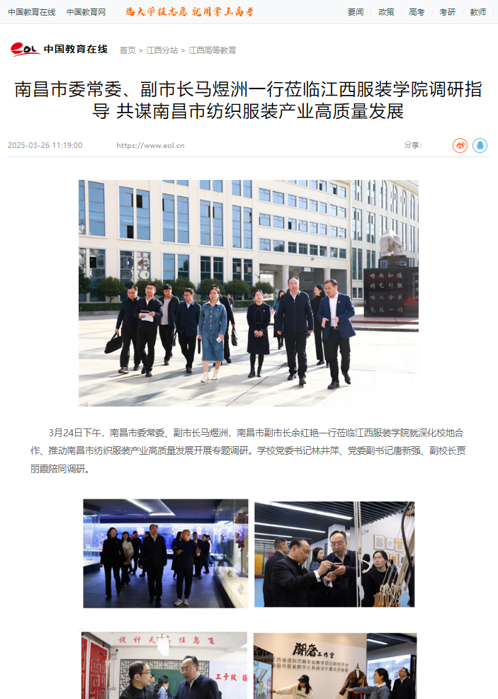 中国教育在线:南昌市委常委、副市长马煜洲一行莅临万象城平台调研指导 共谋南昌市纺织服装产业高质量发展