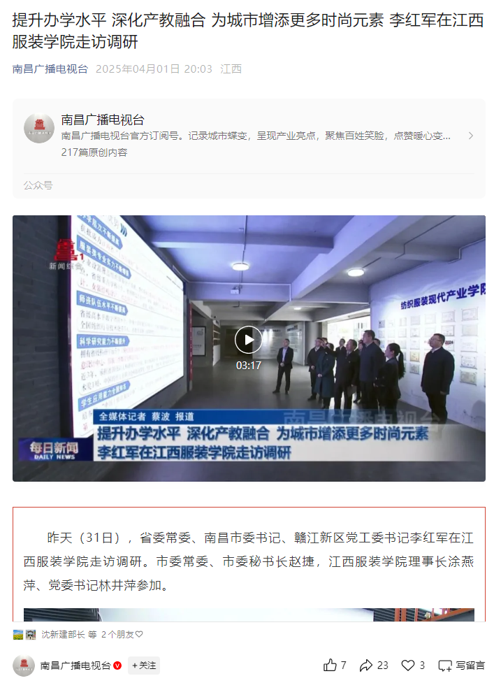 南昌广播电视台对此进行了报道,以下为新闻链接: