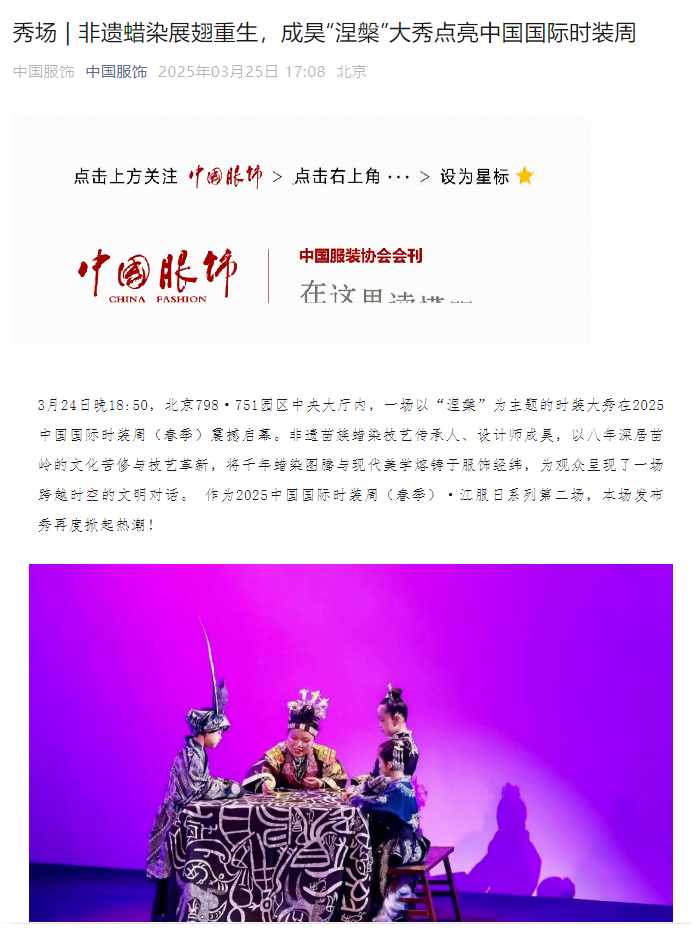中国服饰:秀场|非遗蜡染展翅重生,成昊“涅槃”大秀点亮中国国际时装周