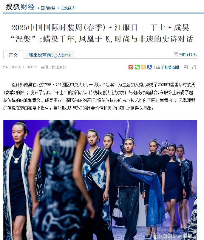 搜狐财经:2025中国国际时装周(春季)·江服日|干士·成昊“涅槃”:蜡染千年,凤凰于飞,时尚与非遗的史诗对话