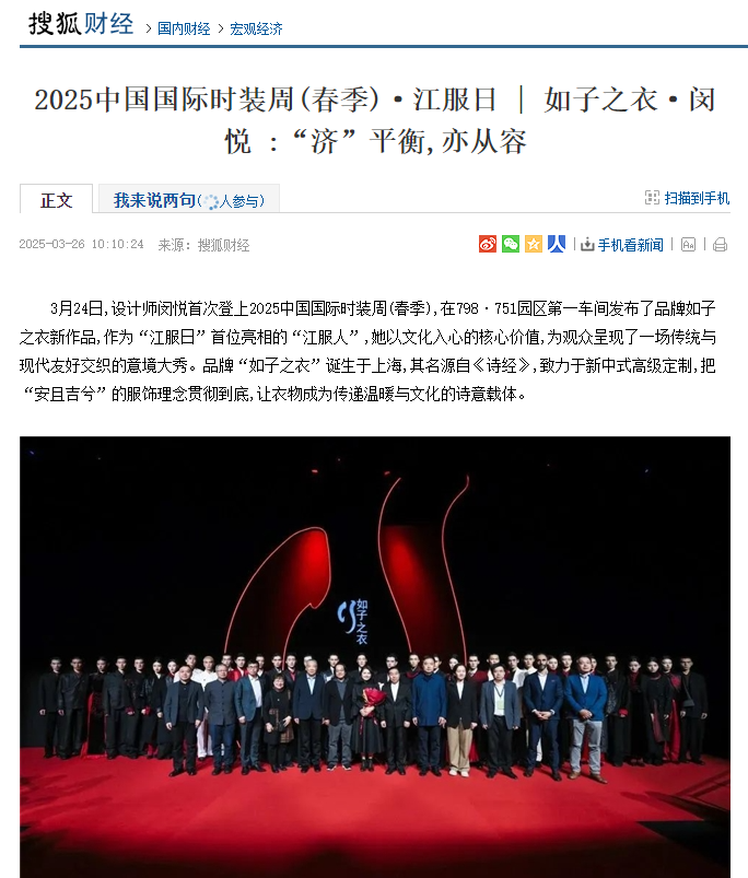 搜狐财经:2025中国国际时装周(春季)·江服日|如子之衣·闵悦:“济”平衡,亦从容