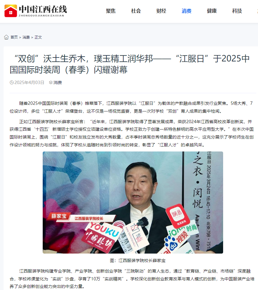 中国江西在线:“双创”沃土生乔木,璞玉精工润华邦——“江服日”于2025中国国际时装周(春季)闪耀谢幕