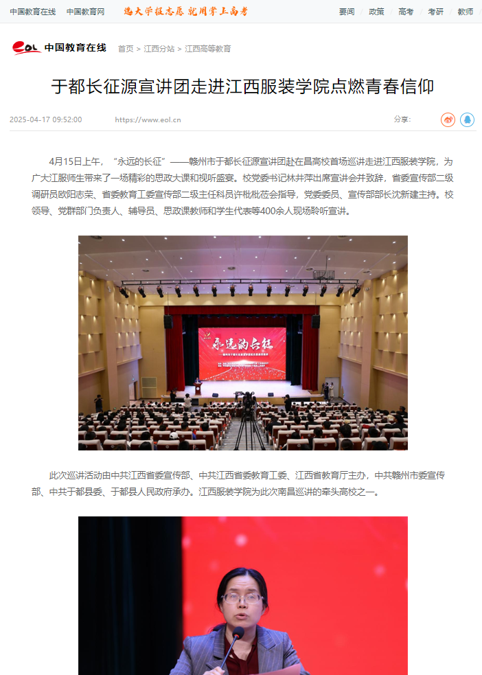 中国教育在线:于都长征源宣讲团走进万象城平台点燃青春信仰