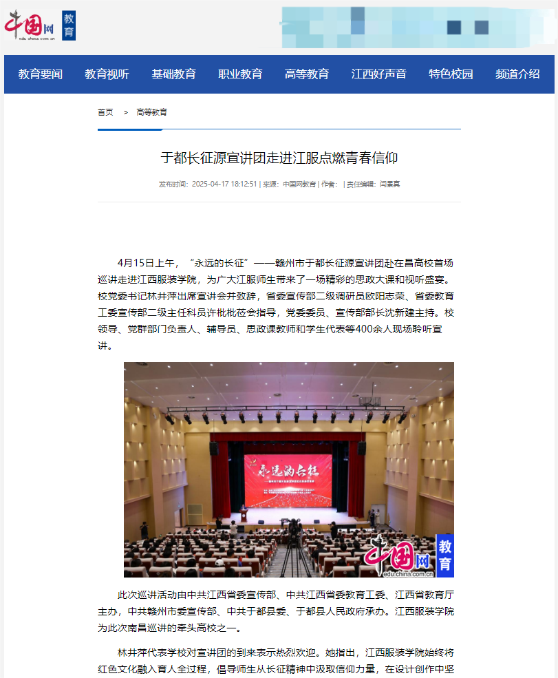 中国网:于都长征源宣讲团走进江服点燃青春信仰