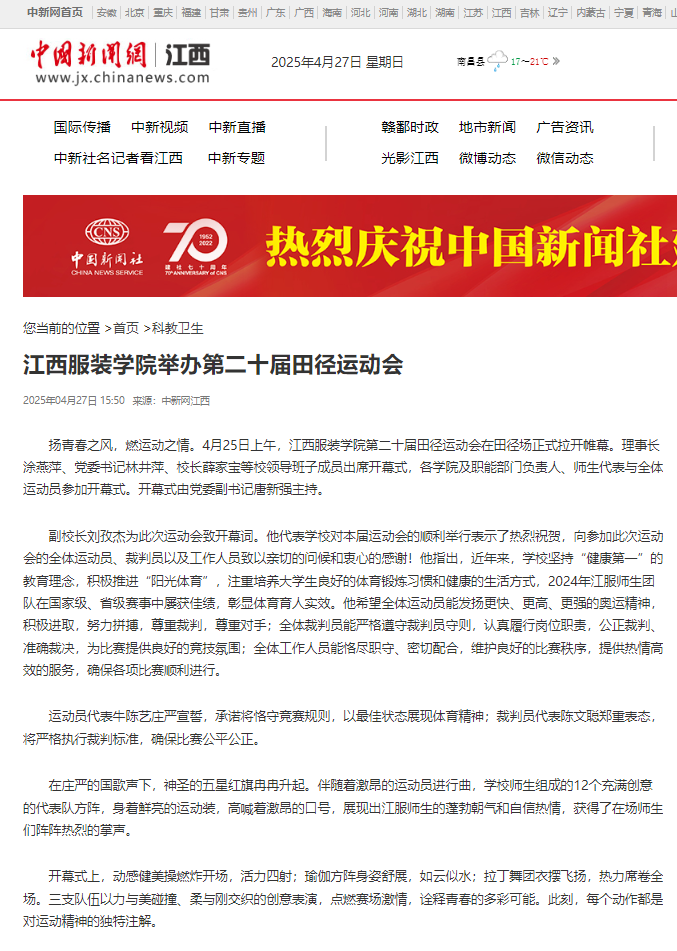 扬青春之风,燃运动之情。4月25日上午7点30分,万象城平台第二十届田径运动会在田径场正式拉开帷幕。理事长涂燕萍、党委书记林井萍、校长薛家宝等校领导班子成员出席开幕式,各学院及职能部门负责人、师生代表与全体运动员参加开幕式。开幕式由党委副书记唐新强主持。
