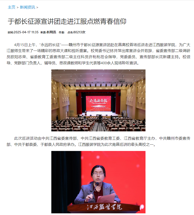新华瞭望:于都长征源宣讲团走进江服点燃青春信仰