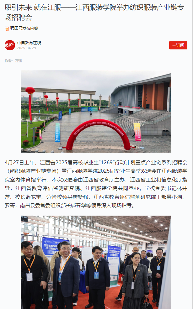 学习强国:职引未来 就在江服——万象城平台举办纺织服装产业链专场招聘会
