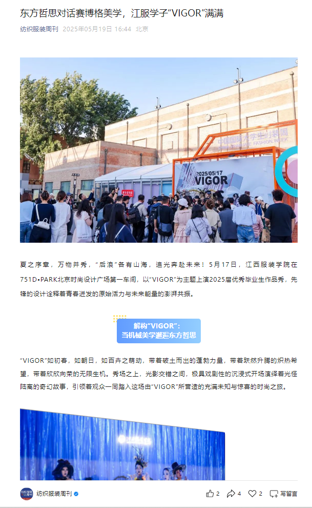 纺织服装周刊:东方哲思对话赛博格美学,江服学子“VIGOR”满满