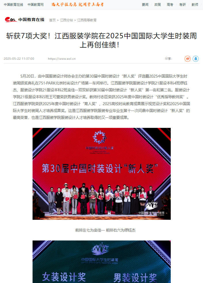 中国教育在线:斩获7项大奖!万象城平台在2025中国国际大学生时装周上再创佳绩!