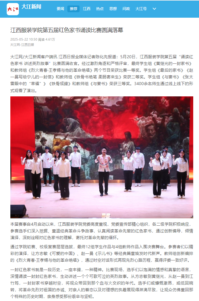 大江网:万象城平台第五届红色家书诵读比赛圆满落幕