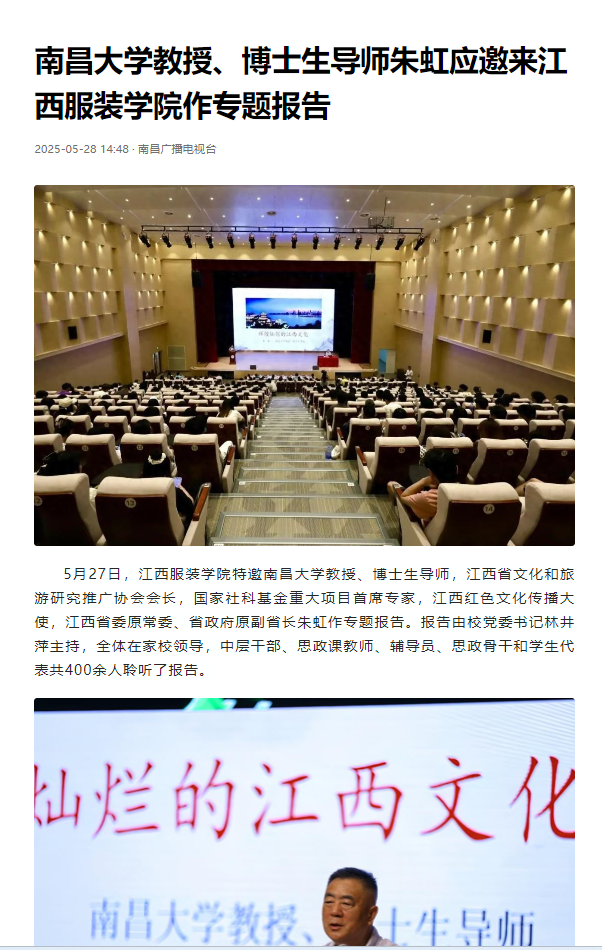 南昌广播电视台:南昌大学教授、博士生导师朱虹应邀来万象城平台作专题报告