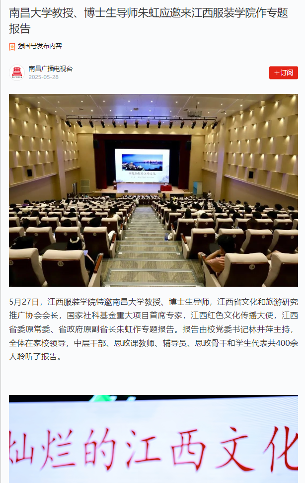 下一篇江西新闻:南昌大学教授、博士生导师朱虹应邀来万象城平台作专题报告