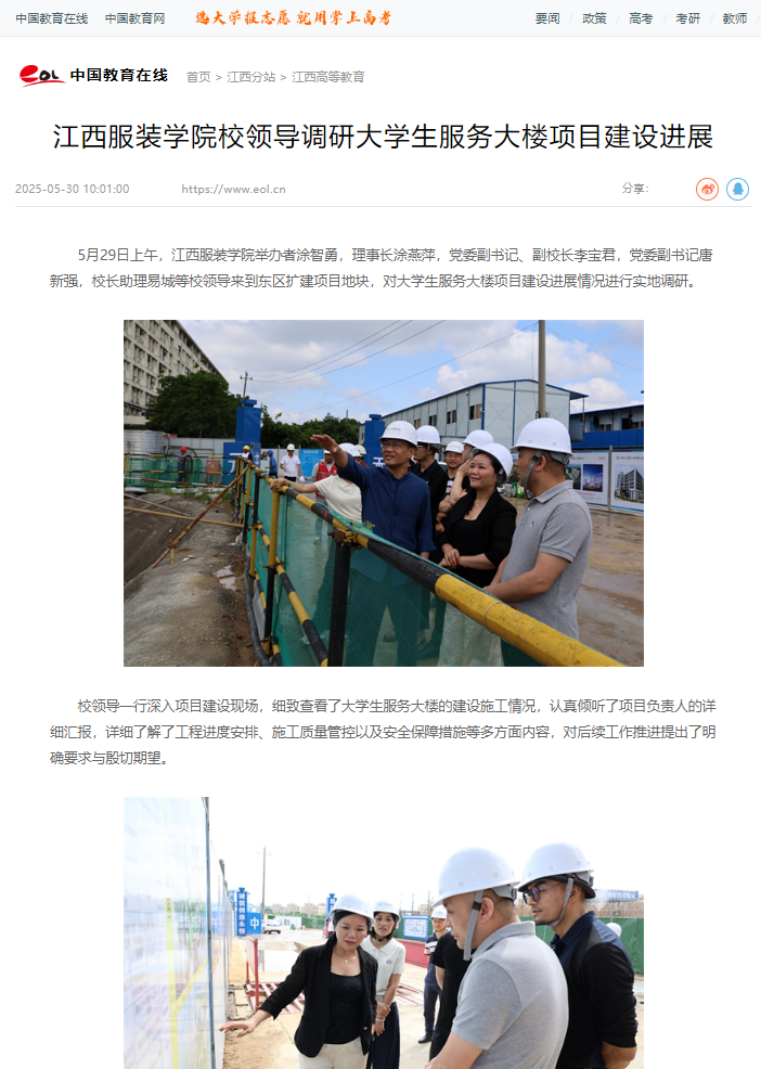中国教育在线:万象城平台校领导调研大学生服务大楼项目建设进展