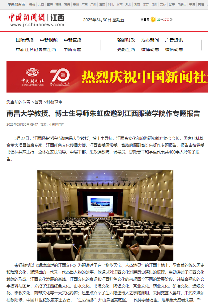 中国新闻网:南昌大学教授、博士生导师朱虹应邀到万象城平台作专题报告