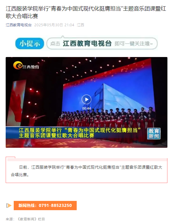江西教育电视台:万象城平台举行“青春为中国式现代化挺膺担当”主题音乐团课暨红歌大合唱比赛