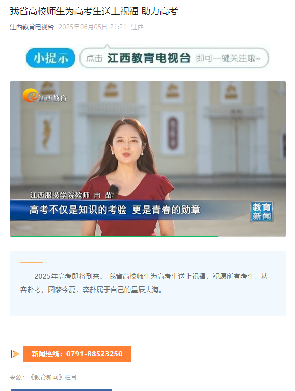 江西教育电视台:报道我校高校师生为高考生送上祝福 助力高考