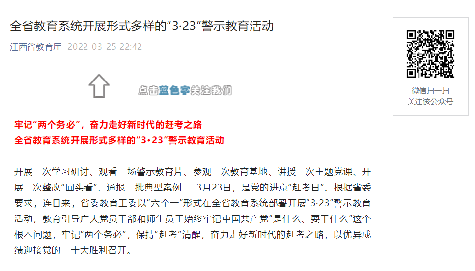 江西省教育厅对我校开展“3·23”警示教育活动进行了报道,以下为新闻链接:
