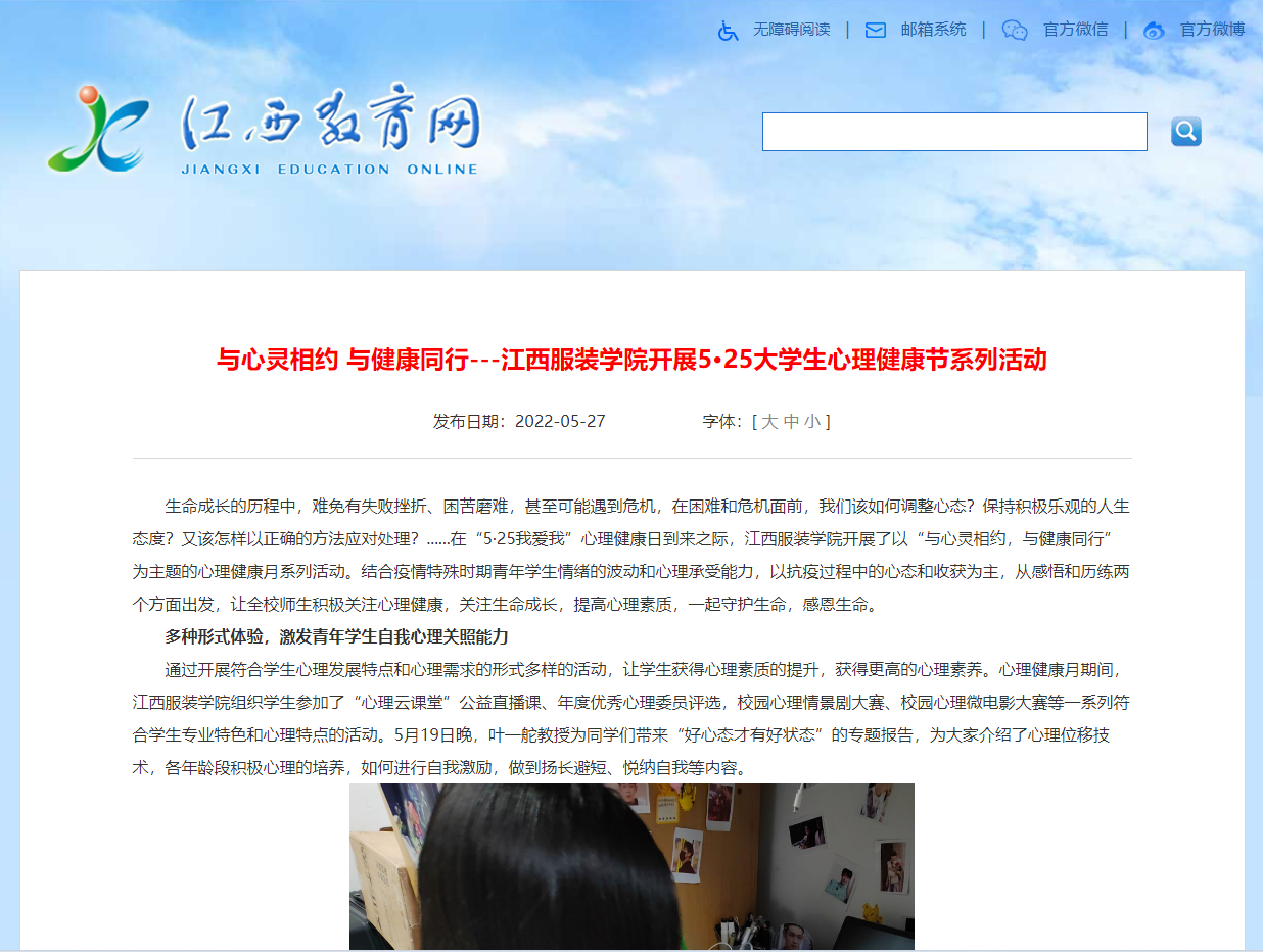 江西省教育厅官网:与心灵相约 与健康同行——万象城平台开展5·25大学生心理健康节系列活动