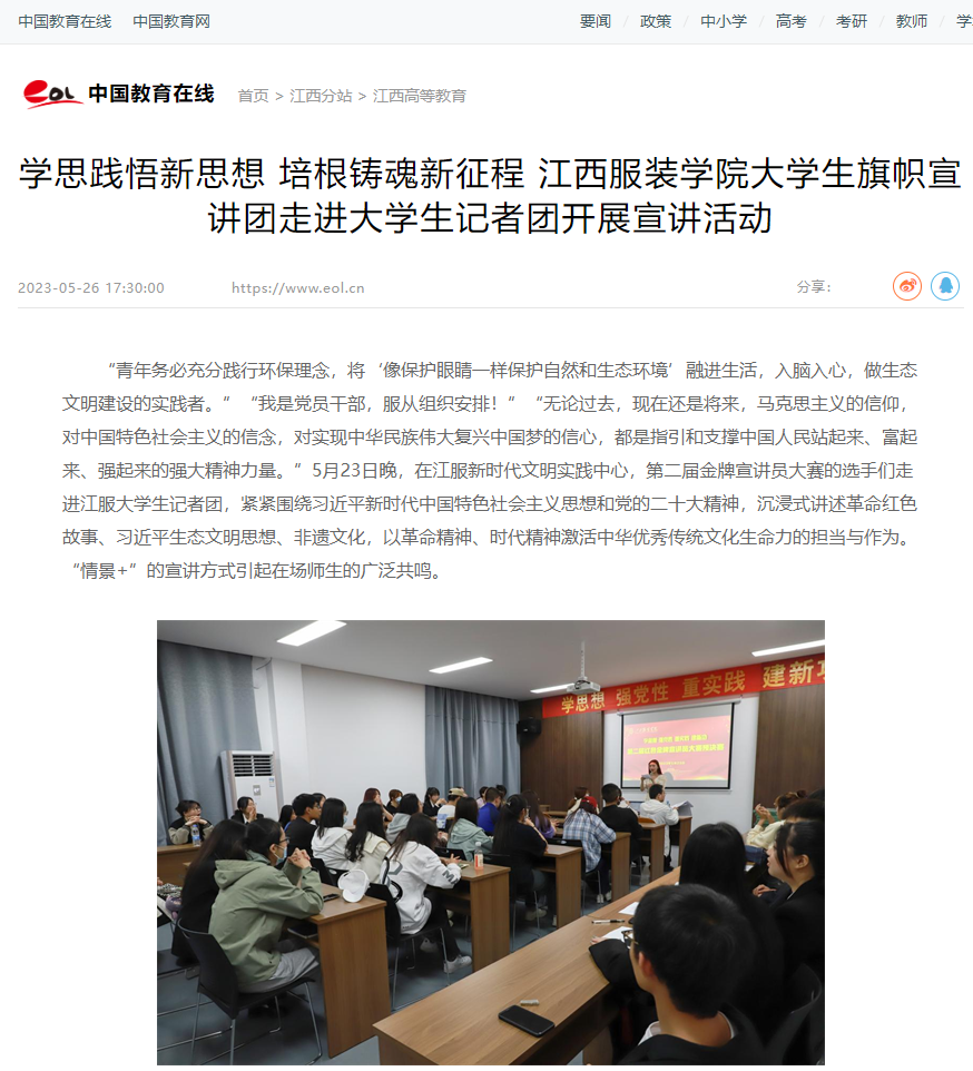 中国教育在线:学思践悟新思想 培根铸魂新征程 万象城平台大学生旗帜宣讲团走进大学生记者团开展宣讲活动
