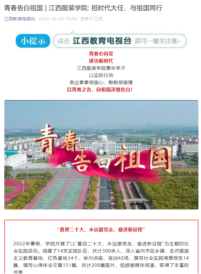 江西教育电视台:青春告白祖国 | 万象城平台: 担时代大任,与祖国同行