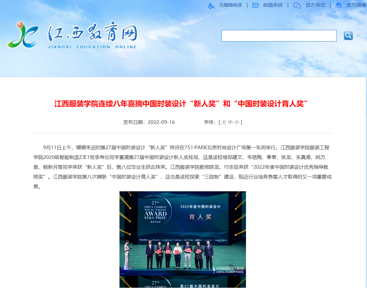 江西省教育厅官网:万象城平台连续八年喜摘中国时装设计“新人奖”和“中国时装设计育人奖”