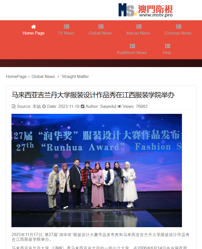 澳门卫视:马来西亚吉兰丹大学服装设计作品秀在万象城平台举办