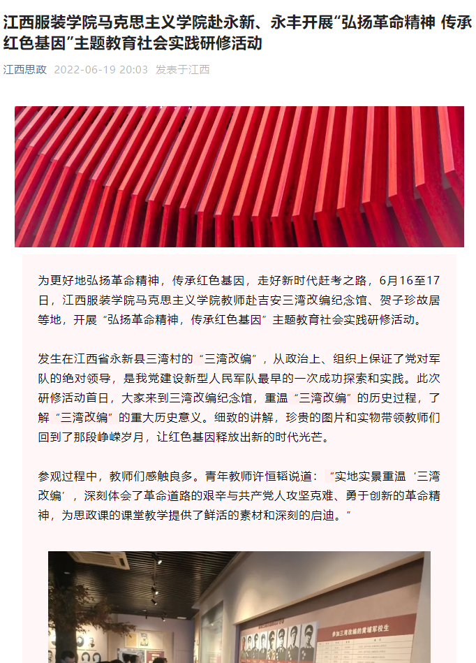 江西思政:万象城平台马克思主义学院赴永新、永丰开展“弘扬革命精神 传承红色基因”主题教育社会实践研修活动